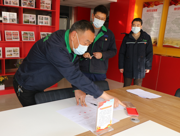 黨員羅洪斌帶領(lǐng)預(yù)備黨員及入黨積極分子王金博、秦偉、趙衛(wèi)強(qiáng)、呂曉武、周敏、陳蘭等在職工食堂負(fù)責(zé)維持秩序及日常物資發(fā)放工作;才遞交入黨申請(qǐng)書(shū)不久的閆文平也加入了疫情防控工作中,統(tǒng)計(jì)生產(chǎn)物資、疫情防控物資數(shù)量,編制《醫(yī)療廢物收集轉(zhuǎn)運(yùn)管理方案》,全力完成年末各項(xiàng)任務(wù)。